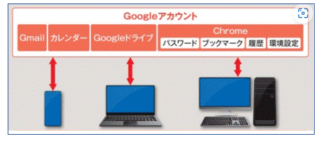 日経xTECH)に示すように各種アプリを同じGoogleアカウントでログインすれば、スマホやPCなど異なる機器間でデータを共通で利用することができます。これを「同期」といいます。