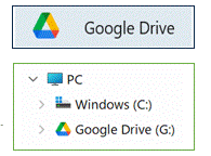 クラウドと略称)を直接アクセスしている図になっています。略称で言い換えると、左ペインで仮想ドライブ「Gドライブ」をクリックして、右ペインでクラウドの「マイドライブ」を覗いている図になっています。