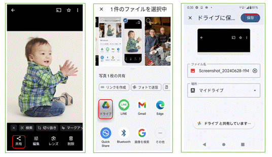 <スマホの写真をGoogleフォトからGoogleドライブへ共有>