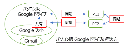 <パソコン版Googleドライブの考え方>