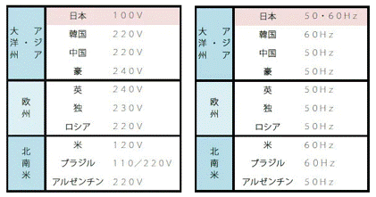 <世界の電圧と周波数の現状>