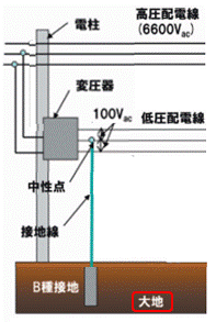 電気を安全に扱うための接地といえば、誰しも家電機器の筐体を接地することを考えるでしょう。ただ、日本の配電系統全体の安全を考えるとき、もう一つ柱上変圧器の2次側の低圧線の接地に行きつくのです。この2つの接地は、電気の安全に欠かせない法で決められた接地なのです。