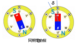 負荷角δ だけ遅れて回転磁界と同期して回転します。