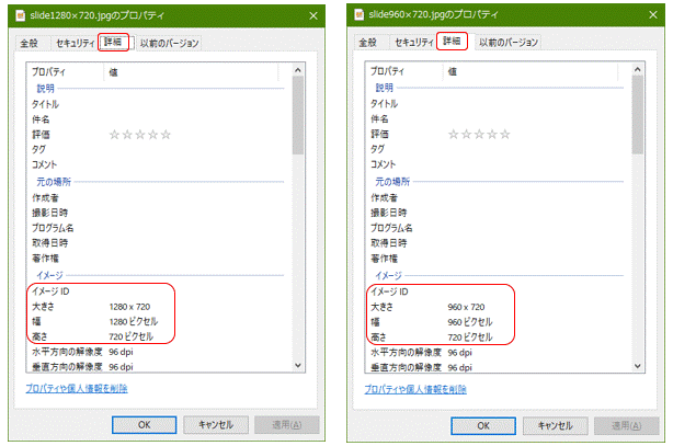 改めてスライドを画像として保存した場合のピクセルサイズを示します。下記は 私の