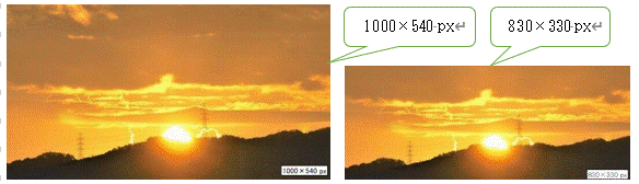 写真「1000×540」ピクセルを、「830×330」ピクセルにリサイズする手順を示します。