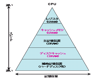 が高速にアクセスできるようにします。(CPU がハードディスクに直接アクセスしても、相手の応答速度が余りにも遅すぎて仕事になりません)