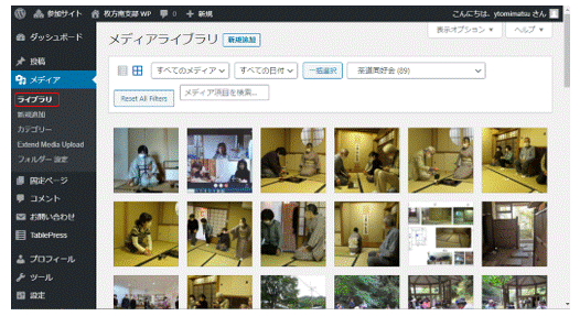 また、私は別の仲間とWordPressでホームページを作っていますが、扱うメディア(画像)が1万枚を越えています。特にこのメディアを扱うときにメモリが不足して、ストレージを「仮想メモリ」にする現象に遭遇して、操作が極端に遅くなることもあります。下図はWordPressで画像を扱うときの一画面です。