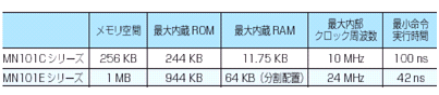 さて、家電製品など大量生産される商品には、ワンチップマイコンがよく使われます。下図に最近のPanasonicの汎用8ビットワンチップマイコンの例を示します。