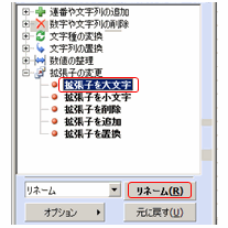 改めて、中ペインで次の操作をします。右図のように「拡張子の変更」~「拡張子を小文字」を選択して、「リネーム」ボタンをクリックするだけです。