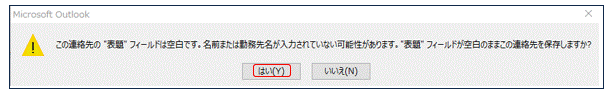 上記の記述が終われば、忘れずに上図左上の「保存して閉じる」をクリックしてください。そのとき下図のような警告が出ますが、構わず「はい」を押しましょう。
