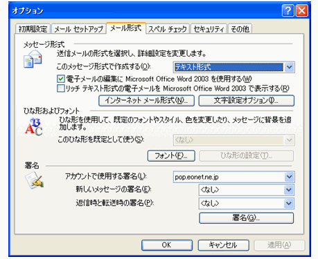 下図はOutlook 2003(XP)の例です。メール文の編集にはデフォルトでWord が指定されていることに注目してください。Outlook