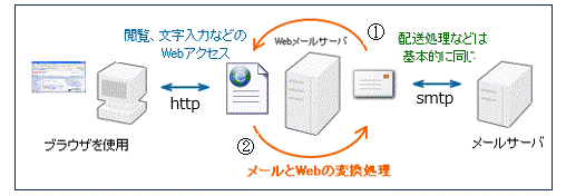 その仕組みの概要を下図に示します。Webメールサーバの働きは