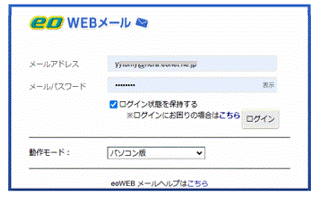 eoWEBメールにログインした URLは「お気に入り」や「ブックマーク」に登録しておくと便利です。ログイン後30日間は同じ端末からのログインは自動的に(ログイン画面を省略)行われます。