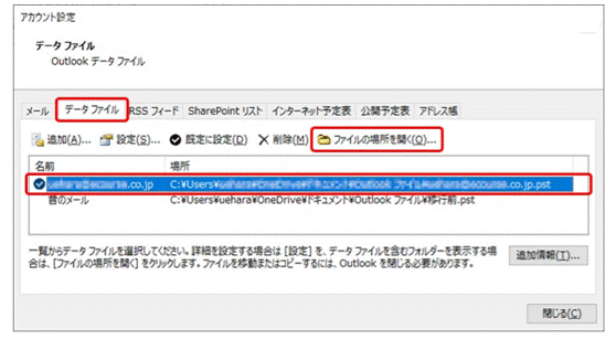 OneDriveの「ドキュメント」~「Outlookファイル」フォルダにあることを確認します。