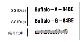 PCをルータに接続するときは、通知領域にある「電波」アイコンを押し、上図のようなSSID(Service Set Identifier:ネットワーク名)を1つ選択します。周波数の違いで「A」は 5GHz帯、「G」は 2.4GHz帯