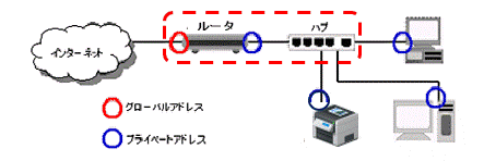 (注)家庭で使うルータは本来のルータ機能の他にDHCPサーバを内蔵しています。複数の機器を接続すればそのIPアドレス(プライベートアドレス)を自動的に生成して、それぞれを独立してインターネットに接続します。一般にいうルータにはこのDHCPはなく、以下の説明も