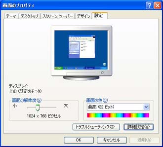 「画面のプロパティ」~「設定」タブで、例えばディスプレイの持つ最大表示画素数を1280×1024とすると、この値を見かけ上 1024×768 などと小さくします。