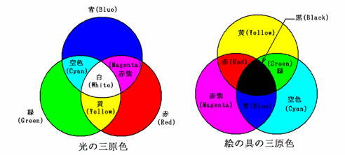 私は子供の頃に、絵の具の三原色は赤・青・黄と習った記憶がありますが、これは少し間違いのようです。絵の具はヘタに混ぜると濁ってしまうことも解ります。