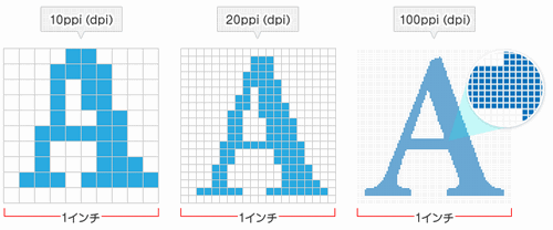 解像度の定義 はある大きさの中の情報の密度を表わす値をいい、一般には1インチ(25.4mm)当たりのドット数「