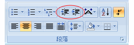 上の文例は4つ目の段落内の任意の場所にカーソルを置き、下図「段落」グループの「インデントを増やす」ボタンを1回押した状態です。もう1回押すと2文字分インデントされます。インデントを減らすには、「インデントを減らす」ボタンを押します。