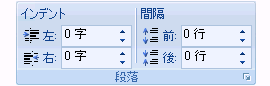 「ホーム」タブの「段落」グループでは左インデントしかできませんが、「ページレイアウト」タブの「段落」グループでは、左右のインデントが可能です。また、ここでは段落間の行間の設定も下図の「間隔」ですることができます。