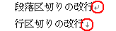 行改行と呼ぶ)といい、段落を変えずに行のみを改めたいときに使います。この行改行は箇条書きや段落番号のある文書を作るときに特に便利な改行で、最後に少し触れることにします。