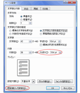 既定値として設定」ボタンを押すと、以降この値が「ページ設定」のデフォルトとなります。