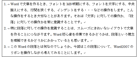 では、このWordの段落とは何なのでしょうか。今回はWord2007のリボンを操作しながら、この段落についての考え方をみていきます。