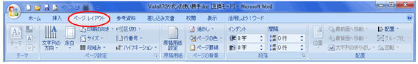 タブを示します。Word2003でよく使った「ページ設定」の内容がメインに納められています。右端の「配置」グループでは、図形の「グループ化」や「前・背面へ移動」などの操作ができるようになっています。