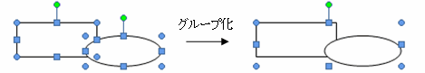 複数図形を扱うときは、下図のように「グループ化」して1つの図形にしておきましょう。複数の図形を選択するには、「Ctrl」キーを押したまま図形を1つずつクリックする方法があります。すべての図形を選択した後は、右クリックから「グループ化」できます。