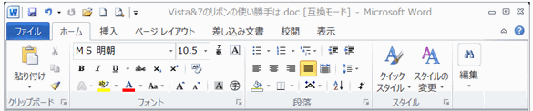 VistaのOffice2007が出た当初(5年も前の古い話です)は、操作画面が使いにくいと散々な評判でした。Office2007からは操作方法が、「リボン」という考え方に大きく変わったからです。Office2007からOffice2010になっても相変わらず戸惑うのは、ほとんどボタンだらけになった操作画面の中から、目的のボタンの探し方です。