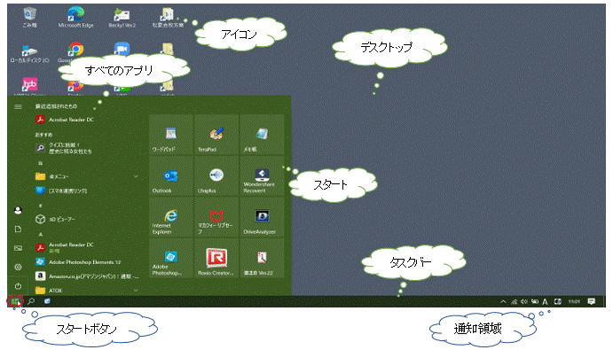 <デスクトップの各部の名称>