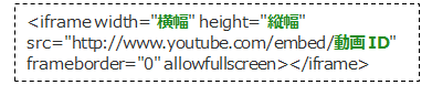 <iframe width=" " height=" " src="https://www.youtube.com/embed/動画ID?rel=0" frameborder="0" allowfullscreen></iframe>