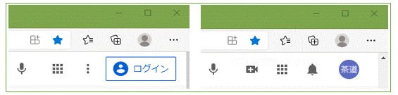 ログイン」すると下図左のようなボタンが、例えば下図右の「茶道」などのアカウントを示すボタンに変わります。YouTube 画面で「茶道」ボタンなどが出ていれば、YouTube